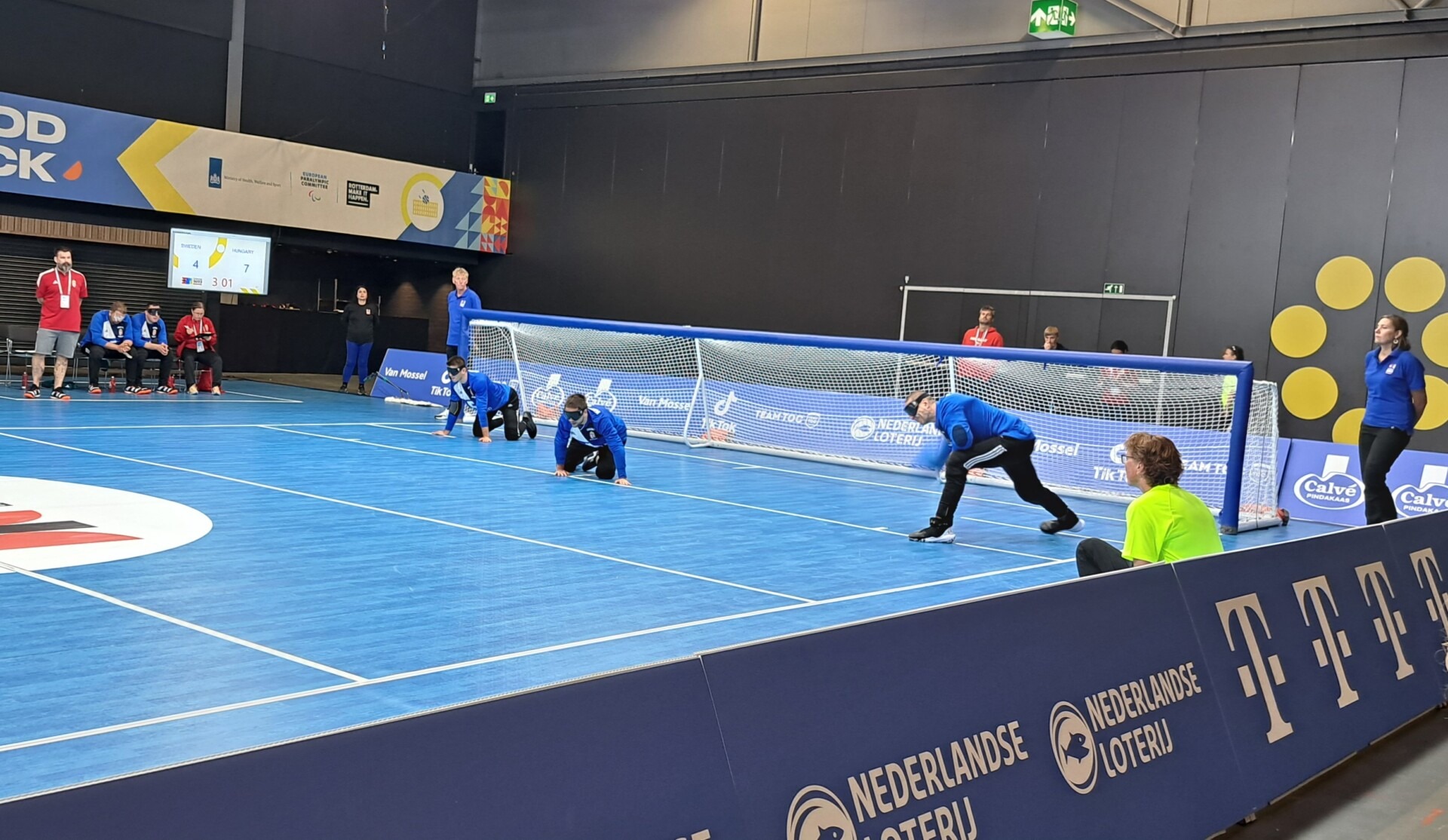 In the Goalball match between the Netherlands and France, France is building a nice margin. The French are scoring wildly and currently led 5-1.